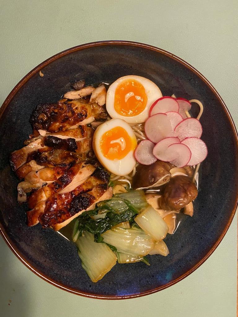 Easy homemade chicken ramen, with a flavorful broth, roasted chicken, fresh veggies, lots of noodles, and a soft cooked egg. Not only is it incredibly cheap but it is warming and quick to make. Making ramen from scratch is pretty darn elaborate. Most ramen stocks are made from bone broth but in this case we're going to use the super flavorful you can go all out and make your own ramen noodles or you can go the easy route and buy fresh. Instant ramen is also a great way to make use of wilting herbs or garnishes, such as leftover basil or chopped green onion.