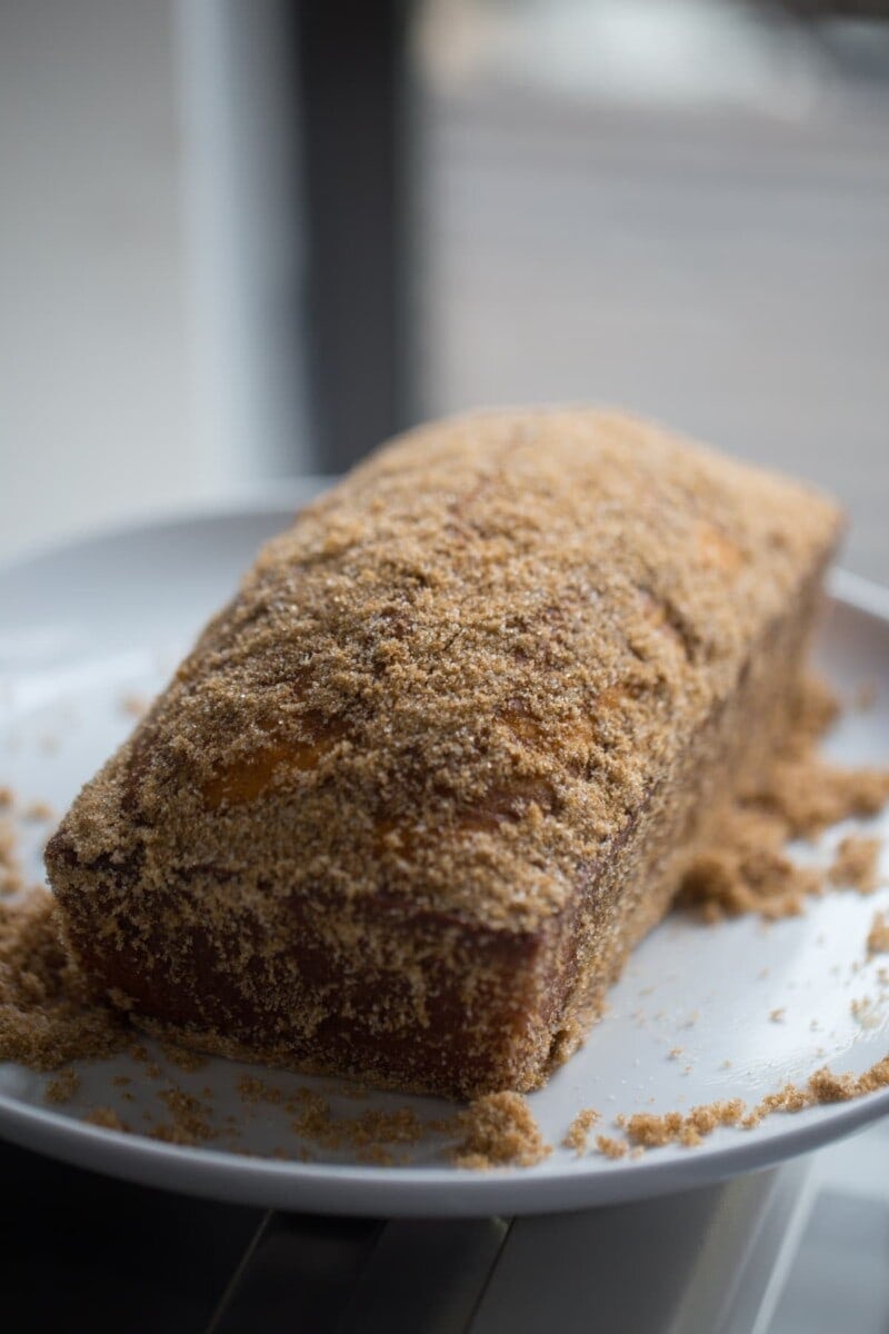 Lightly oil donut pan with coconut oil. 1 1/2 cups all purpose flour. Stir sugar, brown sugar and cinnamon together in a separate large shallow dish. Swirl batter with a long skewer or a knife. Line a loaf pan with parchment paper and brush lightly with oil.